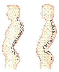| CIFOSIS: Es una exageración de la convexidad del raquis dorsal. Puede deberse a la fusión parcial de cuerpos vertebrales, aplastamiento o acuñamiento vertebral, y/o ausencia de un cuerpo vertebral. LORDOSIS: Es una exagerada concavidad en el raquis lumbar, también llamada ensilladura. La más frecuente es la de la mujer embarazada. |